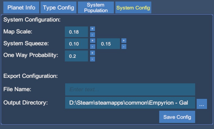 Open with an editor like windows editor or notepad and you ll see all the playfields that are available in any default solar system. Now open your config game file and find solar generator this is the solar capacitor in game and change the fuel capacity to lets say 10000 this mean you do not need anymore to instal in your base a bounch of capacitors you. I m understanding how to use the editor but making changes like enabling laser drills on svs increasing weapon damage or editing alien merchant prices and adding custom pois i don t know how to do for this new system. Empyrion galactic survival 2015.